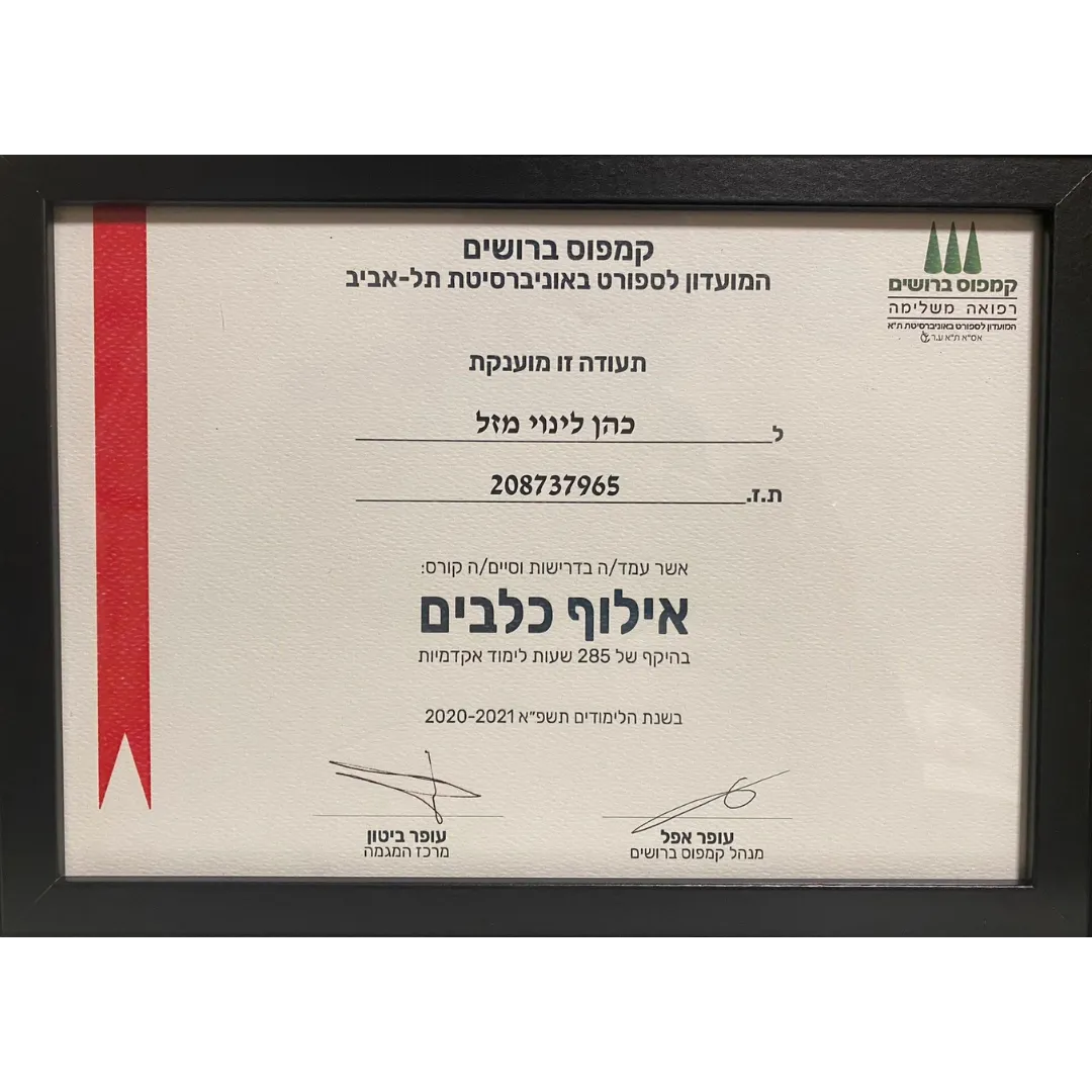 לאחר השחרור למדתי בקמפוס ברושים, שלוחה של אוניברסיטת תל אביב, והוכשרתי כמאלפת כלבים וככלבנית טיפולית במסגרת קורס של מעל 550 שעות לימוד מעשי ותיאורטי.